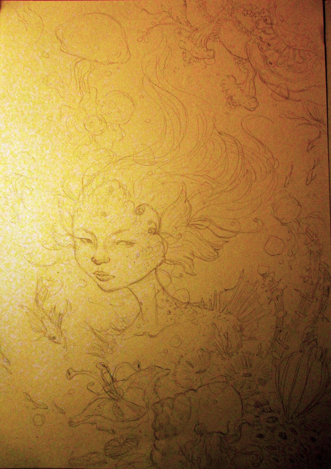 Anyway this girl in the picture is based on the client's (who is also a good friend on mine and an respected artist himself) wife. He wanted me to draw something oceanic and to have his wife as not exactly a mermaid but some sort of sea-being.